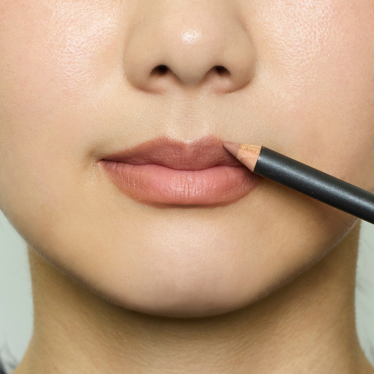 オーバーリップにしたい場合は、リップペンシルで唇の山部分に立体感※をだす。使用しているのはM・A・C リップペンシル(クール スパイス )